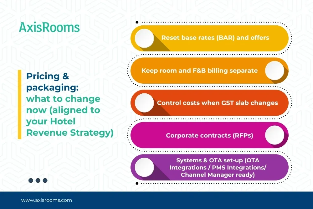 - For guests: prices feel lower because GST is 5% (earlier 12%). Expect better conversions, especially in price-sensitive markets.