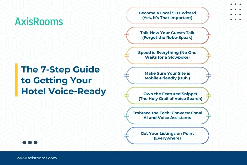 Alright, enough with the scary future talk. Let's get practical. How do you optimize for this? It’s not about rewriting your entire business plan. It’s about smart, strategic tweaks. Here are seven steps to make your hotel a voice search superstar.